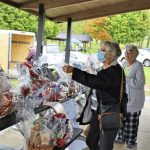 Guests check out the raffle baskets available before buying their tickets during a community picnic held by the Community Church of Pine Run in Washington Township.