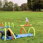Zane Henry, 5, and his sister, Melody, 3, try their hands at the obstacle course set up for kids during a community picnic in Kunkle Park on Saturday.