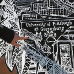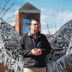 Robert Gregerson, president of the University of Pittsburgh at Greensburg, talks about the Westmoreland Cultural Trust’s new Wings Across Westmoreland installation, which was unveiled in February on the Hempfield campus. The wings feature images relating to the university’s history. The installation marked the 12th of its kind across the county.