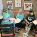 There was lots of green visible in and around The Waters Café on March 17. Guests were greeted by shamrock balloons, a rainbow balloon, leprechaun hats and green beaded necklaces. Plus, the seniors participated in a treasure hunt.