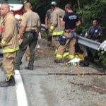 “It was a pretty complicated rescue because the hillside is so steep. We first had to set up struts to secure the vehicle, then we had to cut off the roof in order to extricate them,” said Bradenville Assistant Volunteer Fire Chief Nick Piantine.