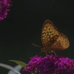 A fritillary butterfly pulls nectar from a buddleia butterfly bush at the Greensburg Garden Center’s butterfly garden on Friday, Aug 13, 2021.