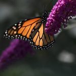 A Monarch butterfly collects nectar from a buddleia butterfly bush bloom at the Greensburg Garden Center butterfly garden on Friday, Aug 13, 2021.