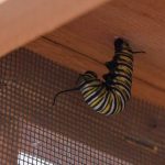 A 6-week-old Monarch caterpillar is getting ready to form a chrysalis at the Greensburg Garden Center on Friday, Aug 13, 2021.