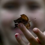 A newly hatched butterfly lands on a child’s hand during at the Greensburg Garden Center’s Lefevre Butterfly Garden on Saturday, Aug 14, 2021. There were 200 butterflies released.