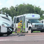 The male bus driver and his three wheelchair-using passengers were among the six people who suffered injuries and were taken by ambulance to area hospitals.