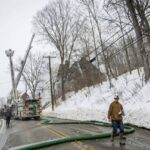 As water rushed through the home and down an embankment onto Main Street, two North Huntingdon public works trucks arrived to spread salt and prevent a massive ice buildup on the roadway.