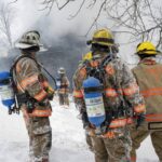 Firefighters faced hazardous conditions, including heavy smoke, single-digit temperatures and a bone-chilling wind. Because the house sat on a hillside, water runoff created treacherous, icy conditions that coated the firefighters’ masks and bunker gear in ice.