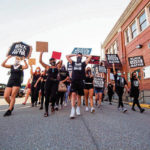 A group of Black Lives Matter demonstrators march to the Greensburg Police Department on Main Street on Thursday, Aug. 20, 2020 in Greensburg.