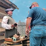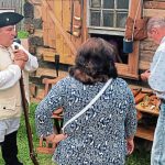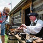 Dan Balzarini of Proctor’s Militia discusses colonial-era firearms with visitors Sunday at Historic Hanna’s Town.