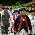 Kristina Serafini | Tribune-Review Reenactor Thomas Klingensmith of Proctor’s Militia leads a group to the fort Sunday after reading the Declaration of Independence at Historic Hanna’s Town in Hempfield.