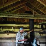 Blacksmith Rex Baughman gives a demonstration inside the forge Sunday at Historic Hanna’s Town in Hempfield. Kristina Serafini | Tribune-Review