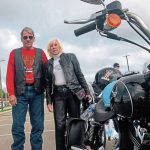 Denny Shoff of Youngwood and Funny Gribschaw of Arona pose for a photo with their 2020 Indian brand motorcycle at the Patriot Thunder/Back the Blue ride on Saturday, July 3, 2021. Riders left from Latrobe Elementary School and finished the day with a party at Mammoth Park in Mt. Pleasant.
