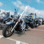 Bikes are lined up and ready to go at the Patriot Thunder/Back the Blue ride on Saturday, July 3, 2021. Riders left from Latrobe Elementary School and finished the day with a party at Mammoth Park in Mt. Pleasant.