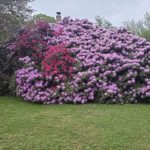 “We say every year we’re going to cut them down, and then I just think ‘oh, no, not this year,’” said Hemminger, pointing to the massive stand of rhododendrons that covers one side of her house. From the western side, the only part of the home that’s visible is the chimney, peeking out over the top of the gigantic flowering shrubs.