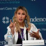 Dr. Mary Elizabeth Kovacik Eicher speaks during a news conference at Westmoreland Hospital in Greensburg on Wednesday regarding a new treatment for Alzheimer’s disease.