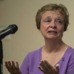 Christine Lieb of Scottdale talks about her experiences in receiving a new treatment for Alzheimer’s during a news conference at Westmoreland Hospital in Greensburg on Wednesday.