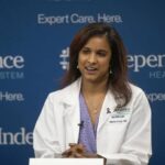 Dr. Nikita Urval speaks during a news conference at Westmoreland Hospital in Greensburg on Wednesday regarding a new treatment for Alzheimer’s disease.