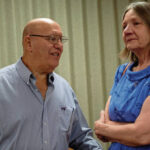 Peter Provenzano and his wife Deborah, an Alzheimer’s patient, chat after a news conference at Westmoreland Hospital in Greensburg on Wednesday.