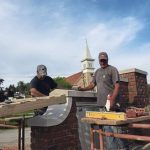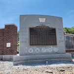 Work crews from Mangery Crane and Rigging and McColly Memorials in Greensburg — the company that originally moved the monument from the former Export school building to the American Legion in the 1990s — brought the 12,000-pound granite monument and base roughly a half-mile down the road on May 6. A crew from Drnjevich Concrete finished work on its new home last week.
