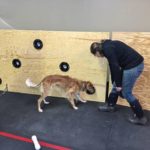 “It’s a wall that has tubes that alternate in height, so the dogs have to go up and down to search,” said Rhea, a freshman at Franklin Regional Senior High School. “Some of the scents are a distraction, and the dogs are meant to find the scent their handler gave them.”
