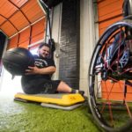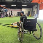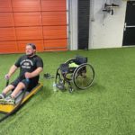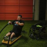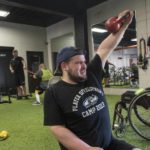 Rocco devises exercises that simulate sled hockey such as sitting on an aerobic stepper working out with battle ropes. Gray was sweating and his face was getting red but he didn’t give in.