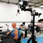 During a session, Signorini and the lab team chattered back and forth. Signorini let them know when the level of stimulation was uncomfortable, providing data that will be used for calibration. A tangle of wires extended around the room connecting computers, equipment, cameras and Signorini.