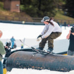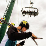 Alex Bellemare of Quebec preps his skis before the start of the qualifying round of competition in the first Steel City Showdown, a freestyle skiing event hosted by Pittsburgh native and world-famous freestyle skier Tom Wallisch, on Saturday, Jan. 11, 2020 at Seven Springs Ski Resort.