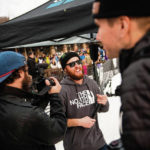 Professional freestyle skier and Pittsburgh native Tom Wallisch speaks for a documentary film interview after competitions finished in qualifying round of competition in the first Steel City Showdown, a freestyle skiing event hosted by Wallisch, on Saturday, Jan. 11, 2020 at Seven Springs Ski Resort.