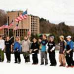 Finalists are congratulated for the crowds after winning the qualifying round in the first Steel City Showdown, a freestyle skiing event hosted by Pittsburgh native and world-famous freestyle skier Tom Wallisch, on Saturday, Jan. 11, 2020 at Seven Springs Ski Resort.