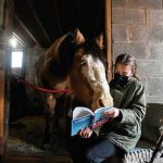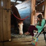 Reagan Hill, 8, of Plum reads to Cei Cei, a 23-year-old paint quarterhorse, during the Stories in the Stable program at Bella Terra Stables in Murrysville. So far, about 50 children have participated in the program. Most have been in elementary school, but the Murrysville wellness center doesn’t limit age.