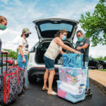 There were timed move-in slots to ensure there was no crush as families toted gear into campus dorms. There also was a new addition to welcome back bags: bright crimson-and-black face masks bearing Seton Hill’s Griffin mascot logo — this year’s must-have accessory on campus.