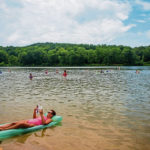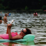 Kim Shawl of Lower Speers relaxes on Keystone Lake while reading a book in the hot weather on Saturday, July 20, 2019, at Keystone State Park in Derry Township.