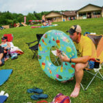 Matt Wienand inflates a tube for his kids in the hot weather at Keystone Lake on Saturday, July 20, 2019, at Keystone State Park in Derry Township.