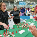 Dairy Queen employees Kailyn Ridilla (left) and Americus Dillon laugh while serving samples of Dairy Queen ice cream on Saturday, July 20, 2019, at Kirk S. Nevin Arena at Lynch Field in Greensburg during the 24th annual Ice Cream Blast.