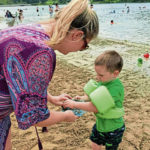 Lea Kleesies of Murrysville adjusts her son Luke’s water toys Saturday at the swimming area at Keystone State Park