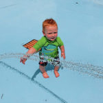 Maddox Spacht, 1, of Greensburg enjoys the cool spray at the splash deck at the Veteran’s Memorial Pool in Greensburg Saturday
