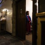 Church member Jason Kirsch, who was waiting for the congregation to be seated, prepares to portray Jesus Christ in the annual reenactment of The Living Last Supper on Thursday, April 6, 2023 at First United Methodist Church in Irwin.
