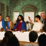 The scene was made famous by Renaissance painter Leonardo di Vinci in his painting “The Last Supper,” which was used as the model for the church’s production.