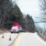 Pleasant Valley Road near Lyons Run Road was blocked off by police for a time Sunday when branches fell on a power line.