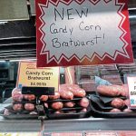 He’s certainly found a way to be different this fall — by offering candy corn bratwurst for a limited time at his Crabtree butcher shop.