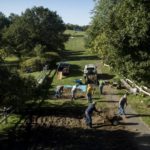 Members of the Delmont Historical Society and volunteers held a clean-up day Saturday at the Shields Farm log house and prepared the backyard for the planting of a colonial-era garden.