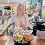 Ally Pacek of Belle Vernon serves a chicken sandwich to a customer at The Trailside restaurant.