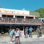 The popular West Newton Bicycle Shop opens onto the parking lot of the West Newton Trailhead of the Great Allegheny Passage.