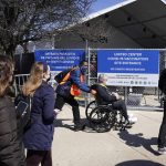 Chicago area residents head into a walk-in mass vaccination site Monday, March 29, 2021, across the street from the United Center, home to the Chicago Bulls and Blackhawks in Chicago.