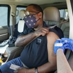 Brian Snipes receives a drive-thru vaccination Monday at ‘Vaccine Fest,’ a 24-hour covid-19 mass vaccination event in Metairie, La., just outside New Orleans.
