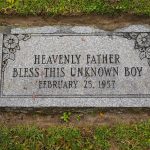 Originally buried in a pauper’s grave, the boy’s remains now lie just inside the front gate at Ivy Hill Cemetery, under a weeping cherry tree, and a headstone designates him as “America’s Unknown Child.” Services have been held there each year on the anniversary of the boy’s discovery inside the box.