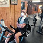 George Kleckner of Greensburg was back riding the stationary bicycle Monday at the Aerobic Center in Greensburg, the first day he could get into the facility.