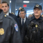 “I spoke to the president this morning. He supports me fully. We’re not going anywhere,” Hegseth said. He ignored questions about the allegations he has faced.