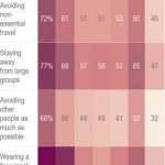 Since vaccines became widely available to the American public, AP-NORC polls have consistently shown that vaccinated people are more worried about infections and more likely to take preventive steps than the unvaccinated. The vaccinated are still more likely than the unvaccinated to say they’re always or often avoiding nonessential travel (44% to 29%), staying away from large groups (51% to 32%) and wearing face masks around other people (49% to 26%).